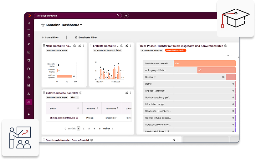 Damit du HubSpot nicht nur einführst, sondern es auch optimal ausschöpfst, begleiten wir dich und dein Team mit praxisnahen Schulungen.