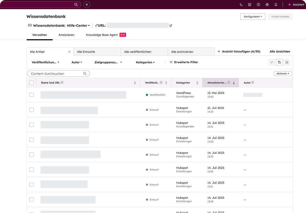 HubSpot zeigt dir, welche Artikel am häufigsten genutzt werden – so erkennst du Wissenslücken und kannst Inhalte gezielt erweitern.